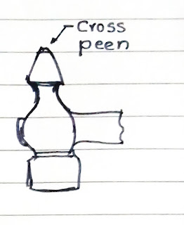 It has the peen perpendicular to the axis of the handle and make it suitable for striking on corner of bends in sheet metal work.
